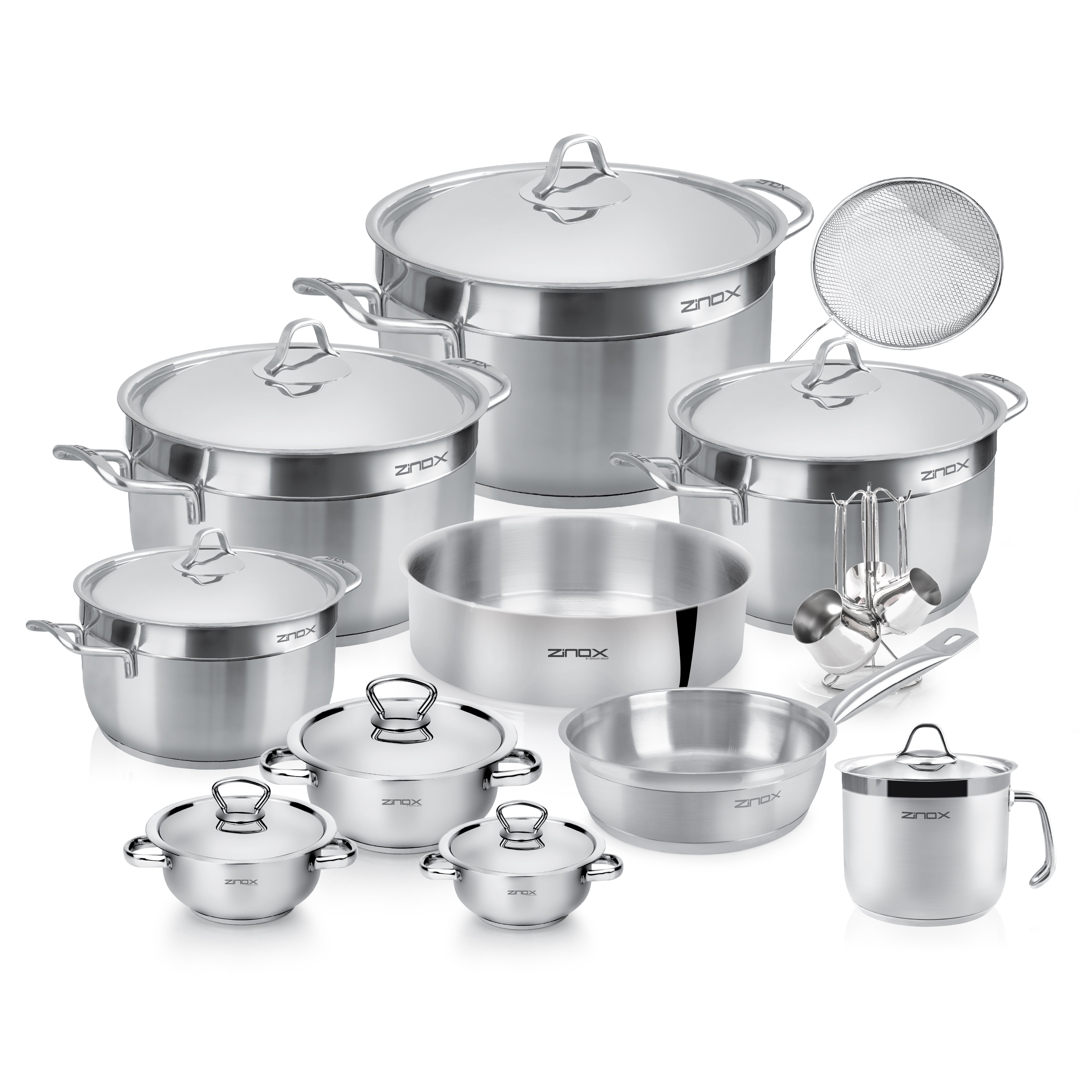 Pot (18 - 22 - 26 - 30) cm - Frypan 22 cm without lid - Round Oven Tray 22 cm - Milk Pot Prime 14 cm - Express set 6 pcs - Coffe Pot Set 4 pcs - Strainer Stainless